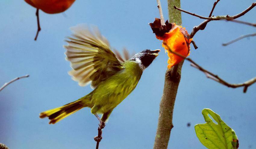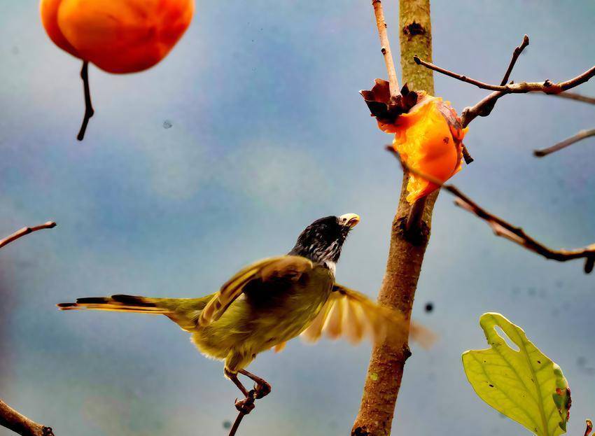 秋阳把柿树的枝桠染成暖金色时,一树灯笼似的柿子便成了雀鸟的乐园。红透的果肉裹着蜜般的甜,引得灰雀、斑鸠争相落上枝头,尖喙轻啄的瞬间,橘红色的果瓣便溢出晶莹的汁水。被啄中的柿子像挂在枝头的小秋千,随着鸟儿的啄食轻轻晃荡老牌股票配资平台,连带着栖在果蒂旁的雀儿也跟着摆动翩翩起舞。(湖北日报客户端通讯员 张天堂 程青山 李峰)